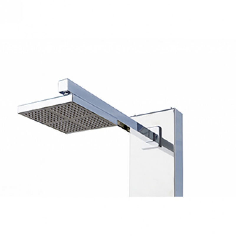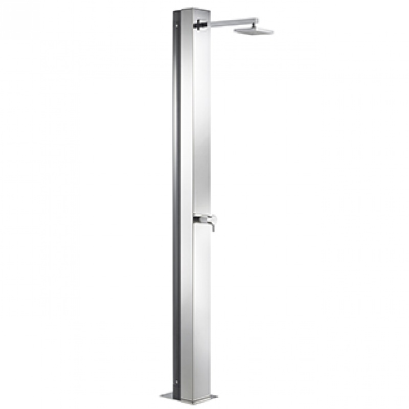 Douche solaire pour piscine en inox AISI 304 poli. Pommeau en ABS chromé traité anti-calcaire 150 x 150 mm. Mitigeur en zamak. Fixation au sol aisée par platine, 4 vis. La version solaire dispose d'un réservoir de 30 litres. Hauteur sous pommeau : 2,0 m