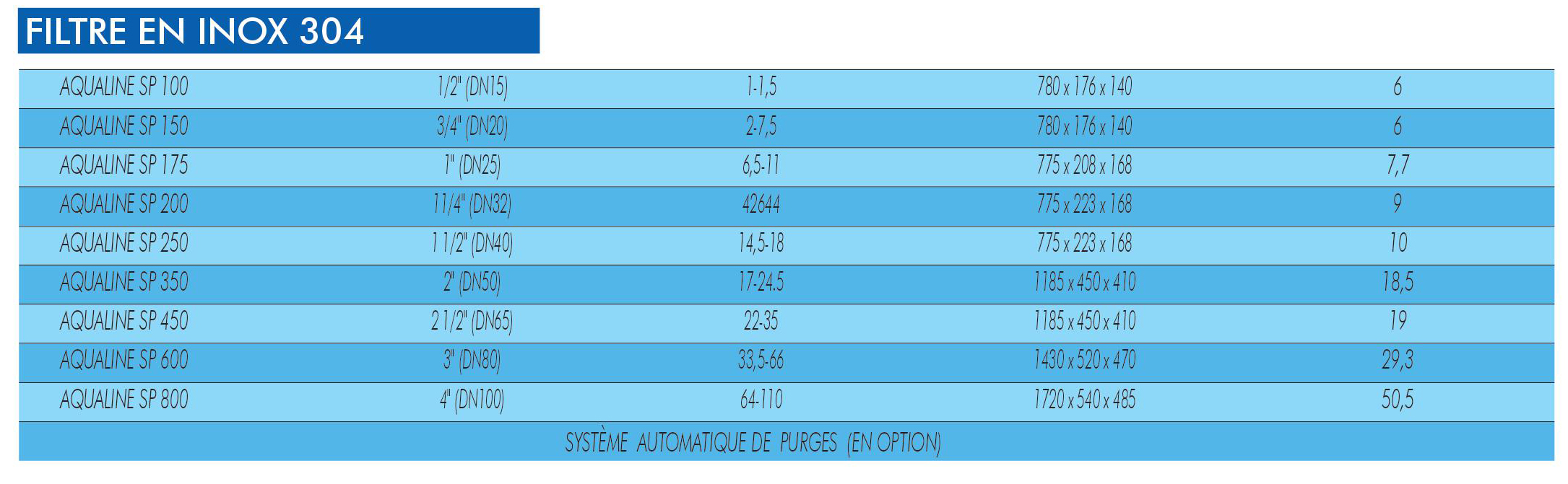 Filtre en inox 304 : Veuillez télécharger la fiche.
