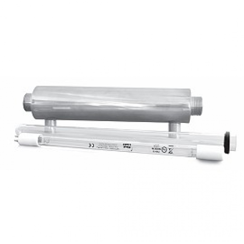 Le E-50 est un stérilisateur UV compact conçu pour la désinfection de l’eau potable dans les résidences, petites structures hôtelières et applications domestiques. Avec une connexion ½" filetée et une lampe de 14 W, il traite jusqu’à 0,4 m³/h en assurant une destruction fiable des bactéries, virus et algues sans ajout de produits chimiques. Son boîtier inox (304/316) garantit résistance et durabilité, tandis que son faible encombrement (65 × 50 × 270 mm) facilite l’intégration sur des réseaux existants. Installation et maintenance sont simples : remplacement de lampe toutes les ≈9000 heures. Idéal pour qui cherche une solution de désinfection sûre, économique et peu intrusive.